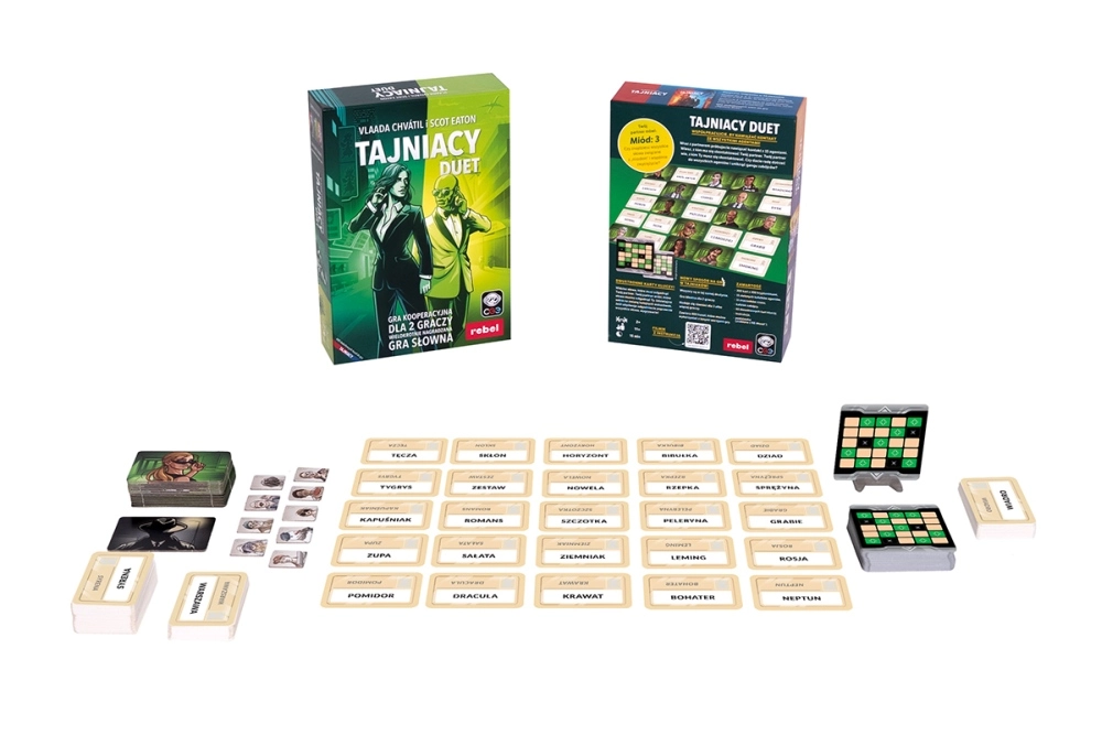Codenames Duet est un jeu de mots coopératif ingénieux pour deux joueurs (et plus) qui mettra à l’épreuve votre communication et votre déduction. Chaque joueur connaît l’identité de certains agents et, grâce à des indices d’un seul mot et à des nombres, tente de guider son partenaire vers les contacts sûrs tout en évitant le tueur mortel et les agents adverses.