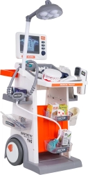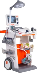 Ce set richement équipé combine outils médicaux, dentaires et ophtalmiques dans un chariot mobile. Les grandes roues et la poignée permettent un déplacement facile, tandis que les étagères et bacs accueillent tous les accessoires. Les enfants profiteront d’un jeu réaliste grâce aux effets lumineux et sonores – lampe, panneau avec vues « RX », thermomètre et miroir dentaire éclairés, et son des battements de cœur dans le stéthoscope.