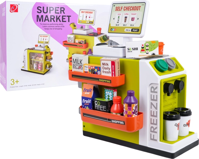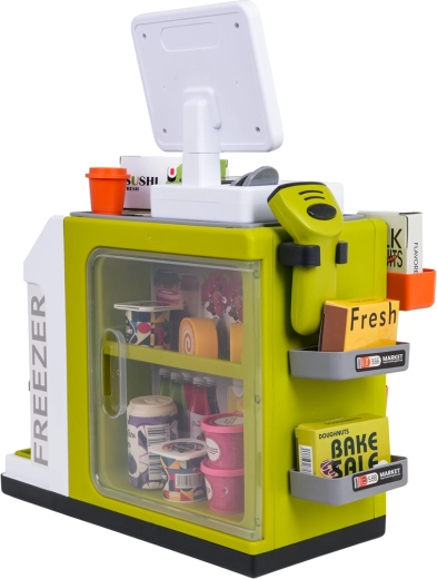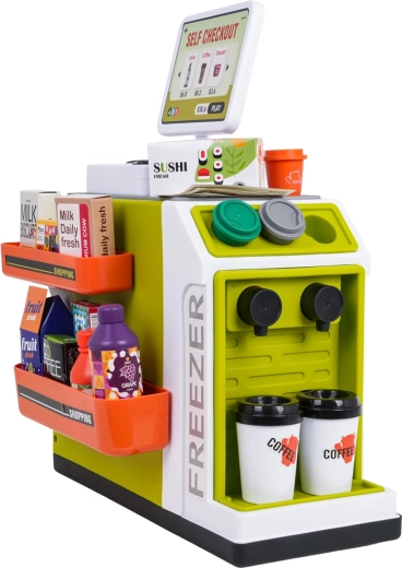 Le mini supermarché pour enfants est un choix idéal pour le jeu créatif et le développement des compétences sociales. Grâce à la caisse libre-service avec sons, au scanner lumineux et à la simulation de paiement par carte, les enfants profitent d’une expérience d’achat authentique. Des étagères colorées, de nombreux accessoires et un réfrigérateur/congélateur ouvrant stimulent l’imagination et enseignent les bases du calcul, du tri et du jeu de rôle.