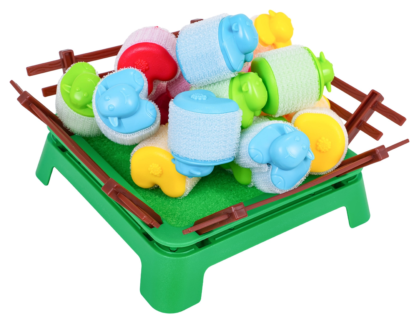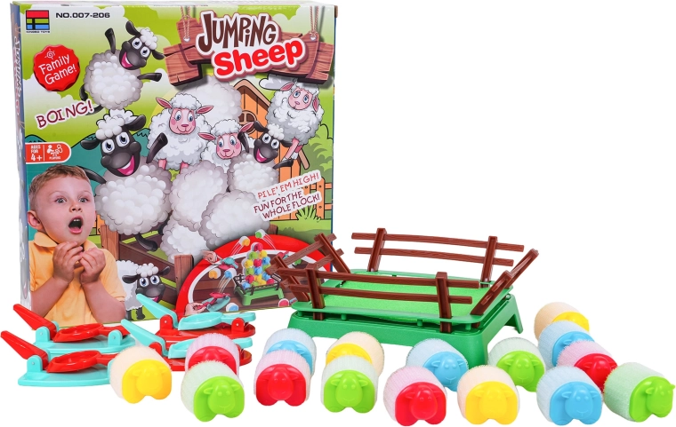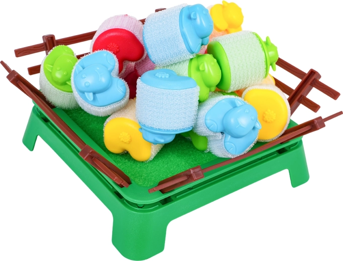 Jeu d’adresse familial amusant pour les enfants dès 4 ans, où les joueurs tentent de mettre leurs moutons dans l’enclos à l’aide de petits lanceurs. Le jeu développe la motricité fine, la coordination œil-main et les réflexes rapides. Les pièces colorées au toucher doux sont fabriquées avec des matériaux sûrs et, grâce au velcro, les moutons peuvent être empilés en tours amusantes.