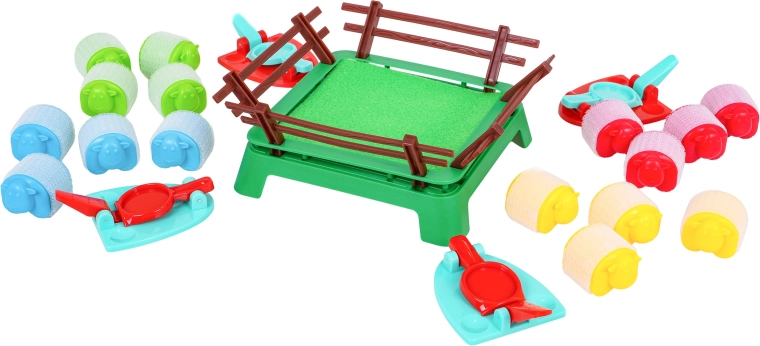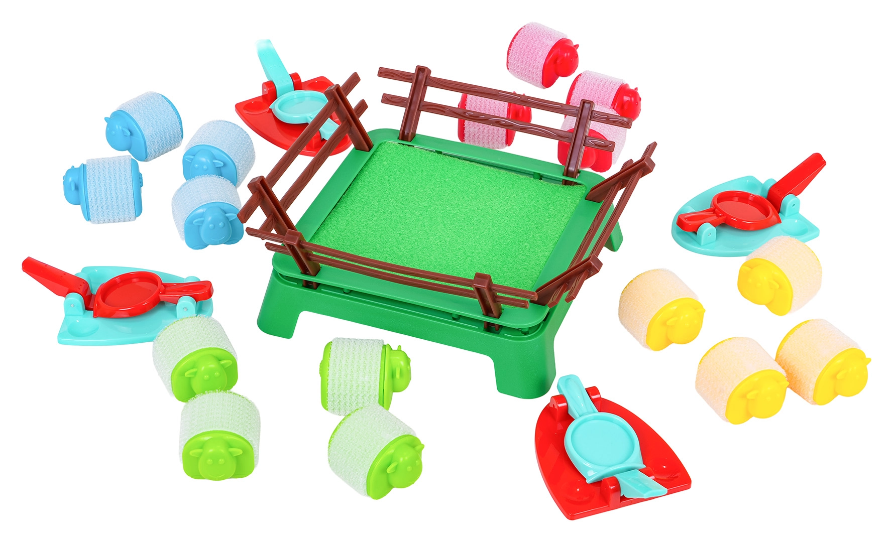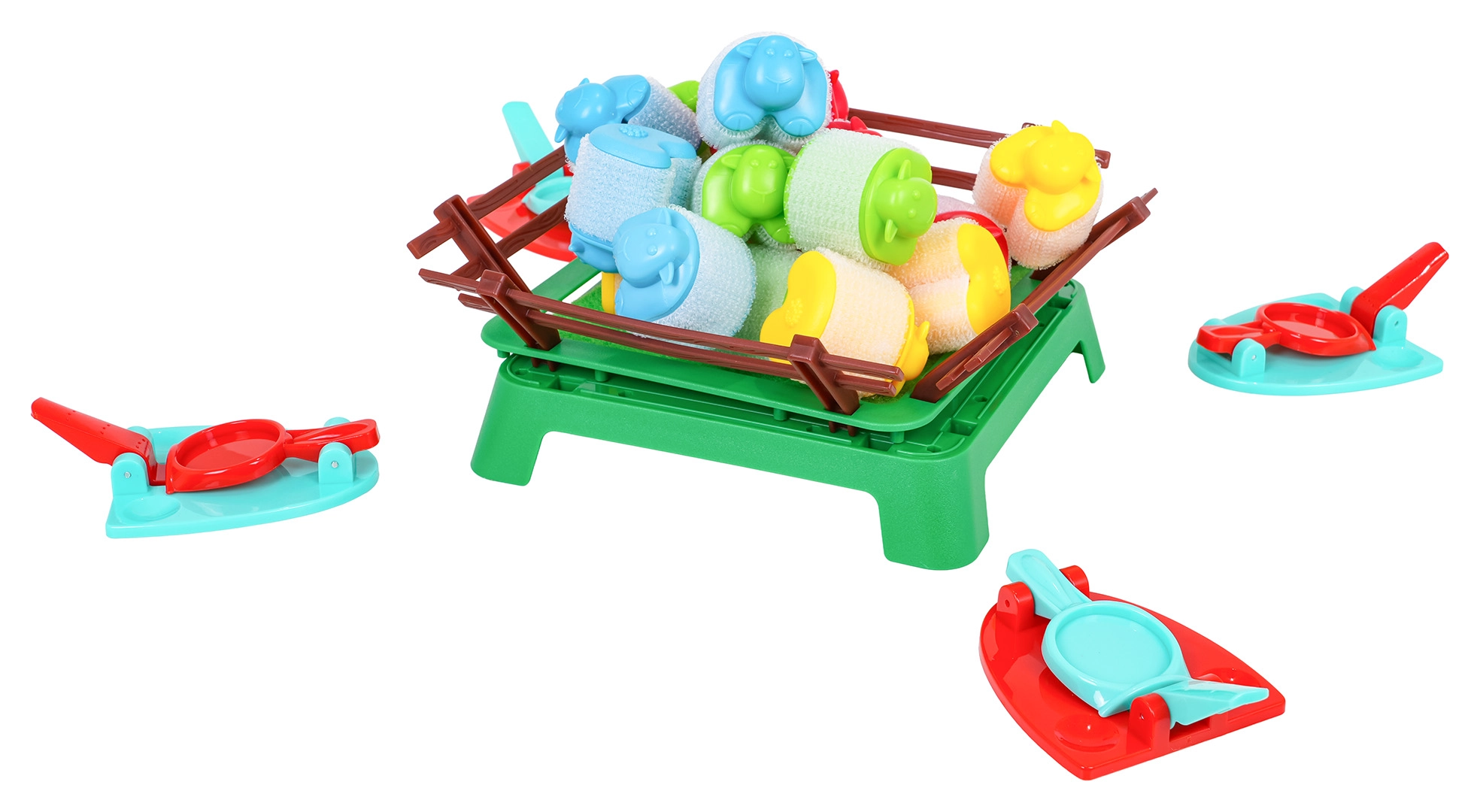 - 16 moutons colorés, 4 lanceurs, enclos, manuel (EN)