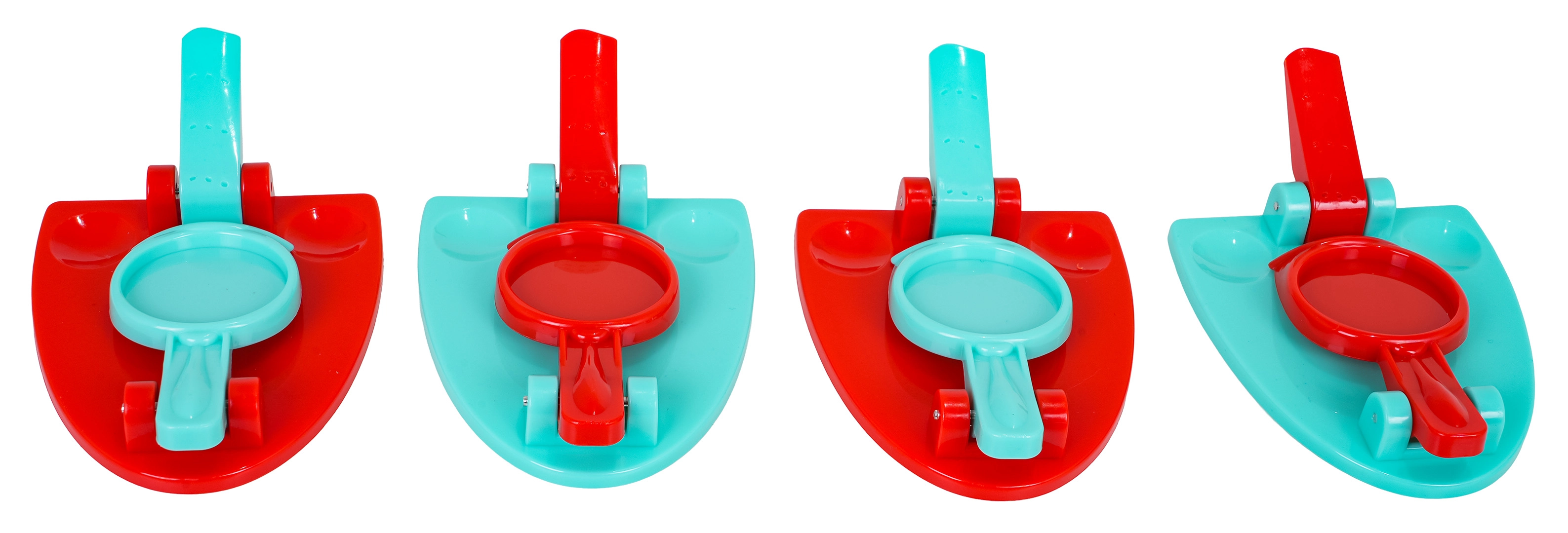 Des lanceurs en plastique robustes au mouvement fluide permettent aux enfants de s’entraîner en toute sécurité à la précision et au dosage de la force.