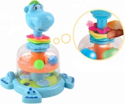 Ce mignon hippopotame bleu offre aux enfants des heures de jeu joyeux tout en développant des compétences essentielles. Appuie sur la tête et observe la roue intérieure et les billes colorées qui se mettent à sautiller gaiement. Les grandes pièces sont conçues pour les petites mains – elles se tiennent facilement et sont agréables au toucher.