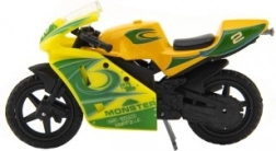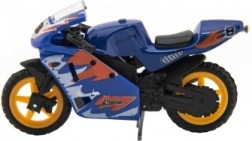 Le modèle de moto de course mesure 8 cm et est fabriqué en combinaison de métal et de plastique. Parfait pour les enfants à partir de 3 ans, il stimule le jeu créatif et imaginatif. La moto est emballée sur une carte et est disponible en plusieurs couleurs différentes.