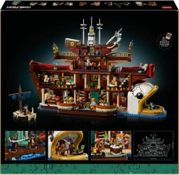Inclut 10 minifigurines d’anime – Luffy, Zoro, Nami, Usopp, Sanji, Zeff, Garp, Helmeppo, Koby et Mihawk – ainsi que de nombreux accessoires, comme de la nourriture et des boissons, un transpondeur (escargophone) et le bateau de Mihawk. Avec 3402 pièces et des dimensions d’environ 35 × 54 × 27 cm, c’est une pièce exceptionnelle pour les fans de pirates, les amateurs de manga et les maquettistes adultes.