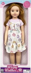 Adorable poupée marcheuse en robe fleurie qui ravira chaque enfant. Elle a des proportions réalistes, une taille de 70 cm et des yeux dormeurs, qui rendent le jeu plus réaliste. Idéale pour développer l’imagination et les compétences de soin.
