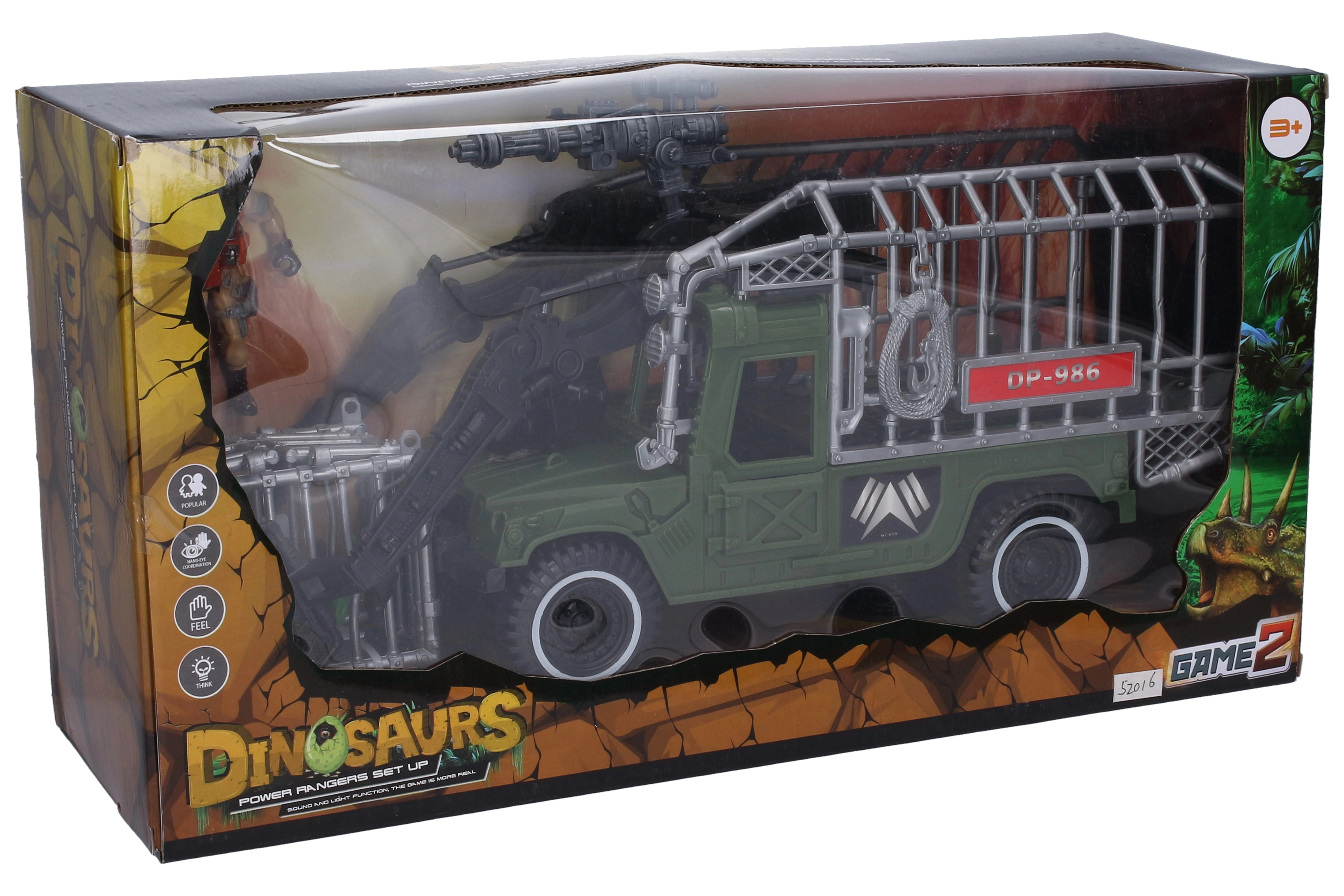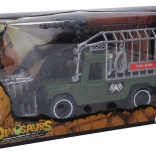 Partez en expédition avec ce set d’action du chasseur de dinosaures. Le grand véhicule de transport avec cage permet d’acheminer en toute sécurité les créatures capturées, tandis que les figurines détaillées stimulent l’imagination et développent la créativité des enfants. Grâce aux roues libres et au convoyeur avant, le jeu est fluide et plein d’action.
