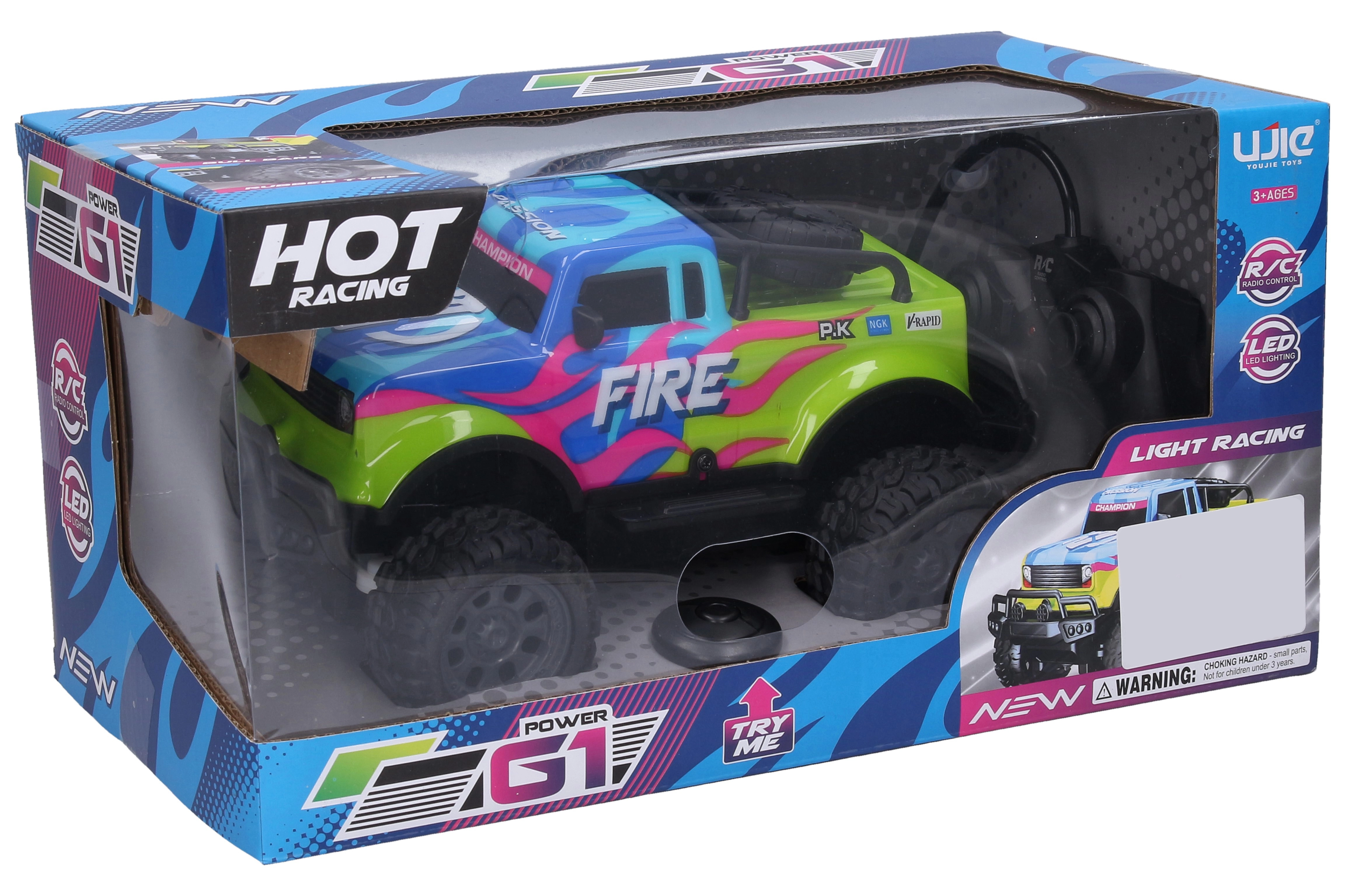 La voiture RC lumineuse Fire apporte un maximum de divertissement pour les enfants comme pour les adultes. Grâce aux éléments lumineux sur la carrosserie, elle se distingue aussi bien de jour qu’au crépuscule. Elle se contrôle facilement avec une télécommande en 27 MHz et atteint une vitesse jusqu’à 10 km/h.