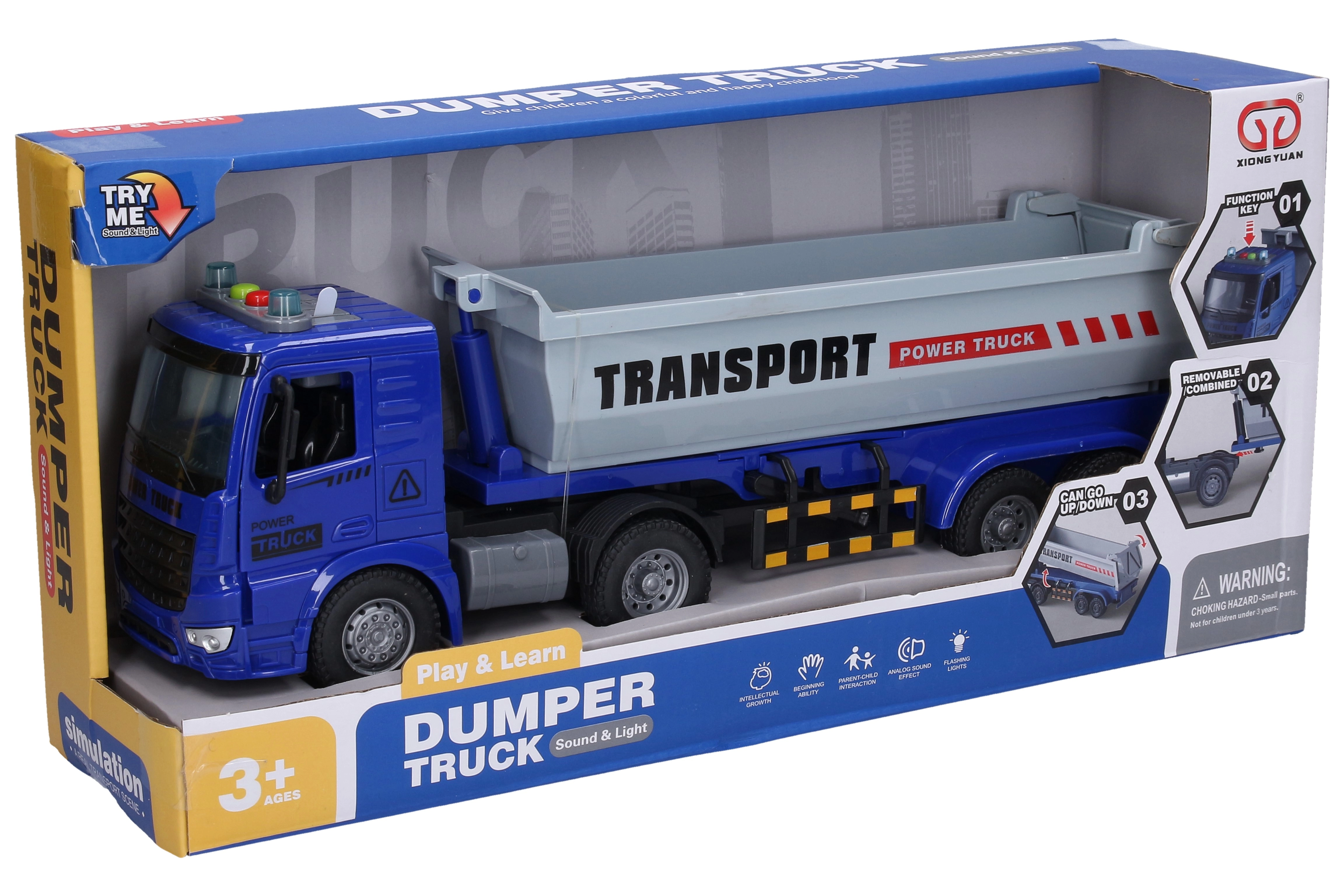 Un camion-benne réaliste avec benne basculante qui ravira les petits conducteurs comme les collectionneurs. Il offre des effets lumineux et sonores, un mécanisme à inertie pour une conduite fluide et des portes ouvrantes. Grâce à la remorque détachable et à la benne basculante fonctionnelle, les enfants vivront des heures de jeu et stimuleront leur imagination.