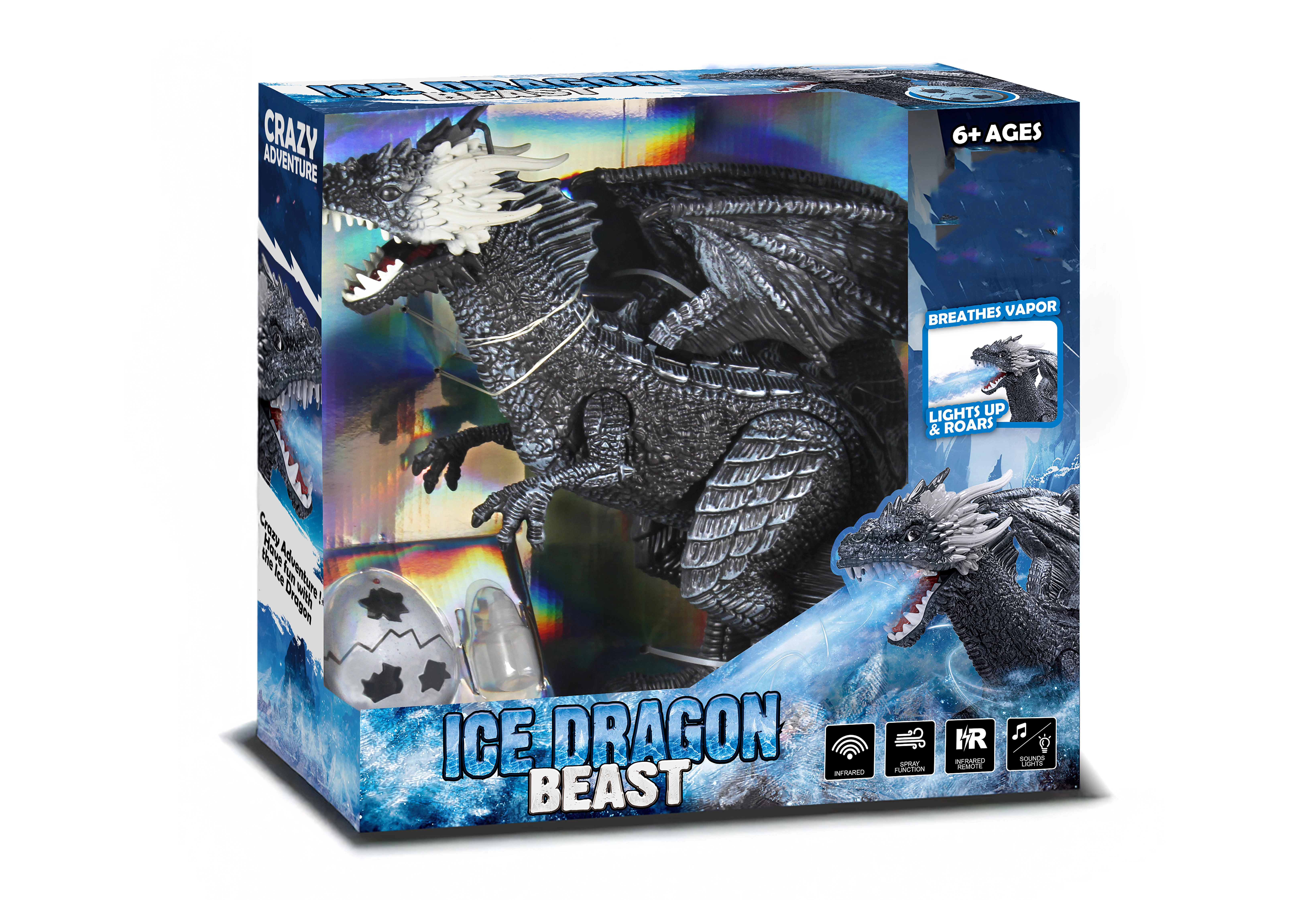 Dragon de glace télécommandé avec effets de fumée, de lumière et de son 56 cm