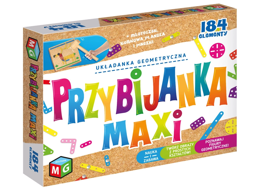 Stimulez l’imagination et la motricité fine des enfants avec le set créatif tableau en liège MAXI. À l’aide d’un marteau en bois, de clous et de pièces métalliques, les enfants créent leurs propres images ou s’inspirent du livret d’idées. Un excellent jouet pour développer la créativité, la patience et la coordination œil–main.