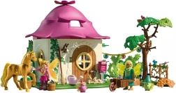Entrez dans une forêt imaginaire où les fées prennent soin de leur licorne dorée étincelante et vivent d’enchanteuses aventures. La maisonnette en forme de champignon avec toit rose, portes et fenêtres ouvrantes offre un cadre douillet pour jouer – du lit en forme de feuille jusqu’à la petite cuisine forestière.
