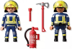 Deux courageux pompiers du PLAYMOBIL Duo Pack sont prêts à intervenir. Avec un équipement professionnel comme une hache, une lampe de poche et un extincteur, ils gèrent tout incendie et mission de sauvetage. Grâce aux visières mobiles sur les casques, ils bénéficient d’une meilleure visibilité et d’une réaction rapide. Idéal pour le jeu créatif et pour compléter une collection.