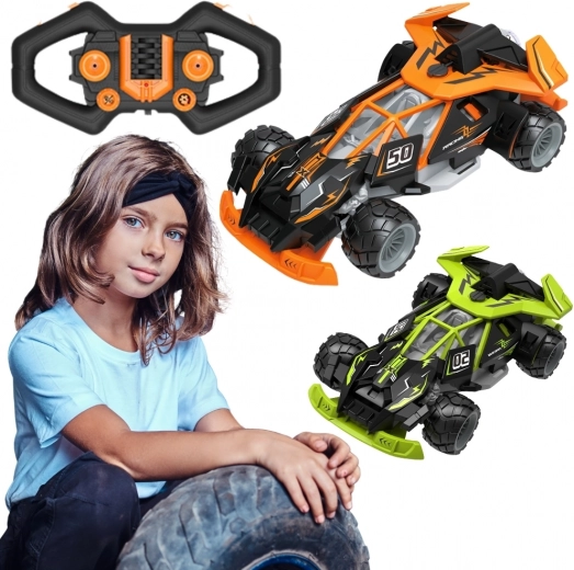 Une voiture RC rapide et amusante de la marque WOOPIE pour les enfants dès 6 ans, offrant un contrôle stable 2,4 GHz, un éclairage LED spectaculaire et des pneus tout-terrain pour jouer à la maison comme en extérieur. Grâce à la télécommande intuitive à deux joysticks, les enfants maîtrisent rapidement une conduite précise et profitent de courses dynamiques. La couleur est envoyée aléatoirement (orange ou vert).