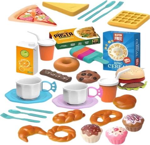 Ce set polyvalent est idéal pour les petits amateurs de pâtisserie et de jeux de rôle. Grâce à la large variété de composants, les enfants créent facilement leur propre menu, servent des invités et s’exercent à la politesse et à la communication. Les détails réalistes et les couleurs agréables stimulent l’imagination, tandis que le seau transparent pratique facilite le rangement et le transport.