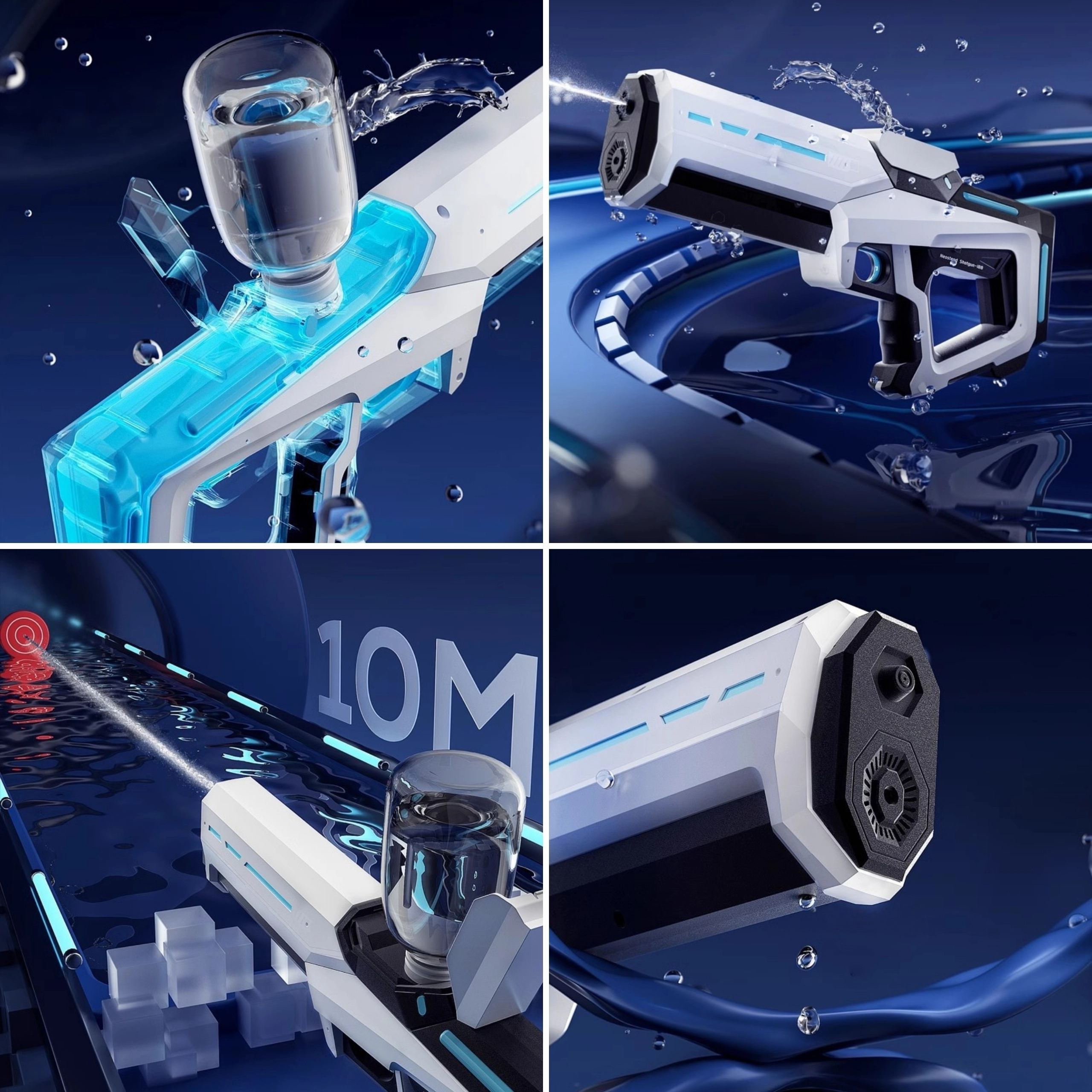 Entrez dans l’univers des batailles d’eau avec le blaster électrique Woopie, qui allie confort, performance et durabilité. Grâce à une disposition intelligente des boutons et à une poignée ergonomique, la prise en main reste facile même lors des phases de jeu intense. Le mécanisme d’aspiration permet de remplir l’eau automatiquement en maintenant la gâchette dans le sens inverse, et pour des sessions plus longues, vous pouvez fixer en haut une petite bouteille faisant office de réservoir.