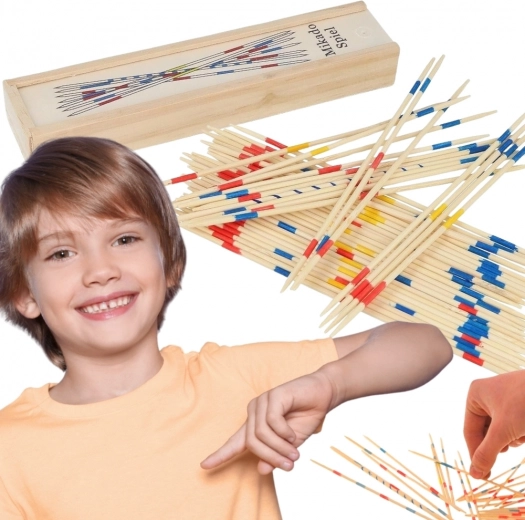 - Contenu de l’emballage : ensemble complet de bâtonnets en bois avec marquage coloré, règles du jeu avec variantes de comptage, boîte de rangement.
