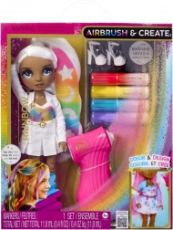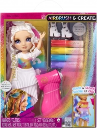 La poupée Rainbow High, vêtue de blanc et aux cheveux blancs, sert de toile parfaite pour les petits créateurs de mode. À l’aide de l’aérographe et des feutres lavables aux couleurs rouge, jaune, bleu et violet, les enfants peuvent imaginer des designs uniques de la tête aux pieds. Une fois le jeu terminé, ils rincent simplement les couleurs et peuvent recommencer.