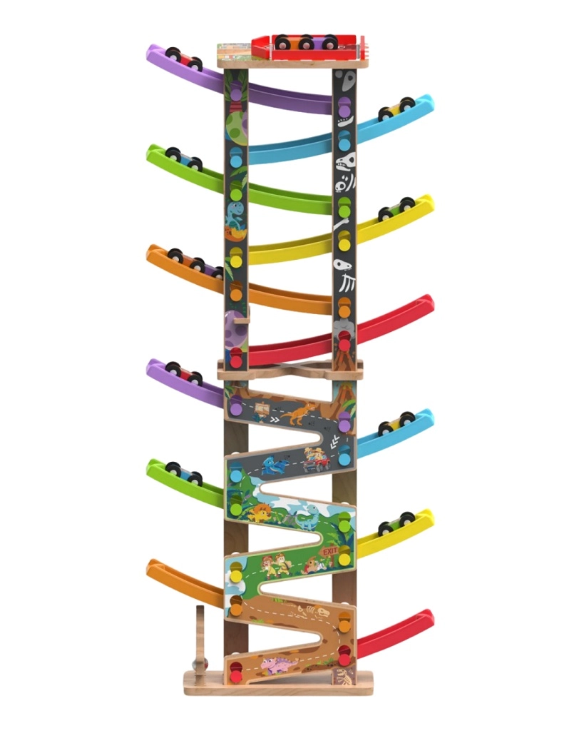Cette grande piste de course en bois apporte encore plus de vitesse et de plaisir dans la chambre des enfants. Grâce à ses six rampes colorées, les enfants suivent la descente fluide des voitures et découvrent les principes de la gravité et de la cause à effet. La piste peut être utilisée seule ou connectée comme extension à votre circuit existant pour une course encore plus longue et dynamique.