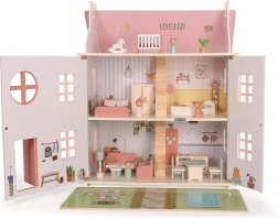 Cette maison intemporelle en bois de qualité ravira les petits conteurs comme les amateurs de design. Grâce à ses trois niveaux et à l’agencement réfléchi des pièces (cuisine, salle de bain, salon, chambre et chambre d’enfant sous les combles), elle offre l’espace idéal pour des histoires familiales et des scènes du quotidien.