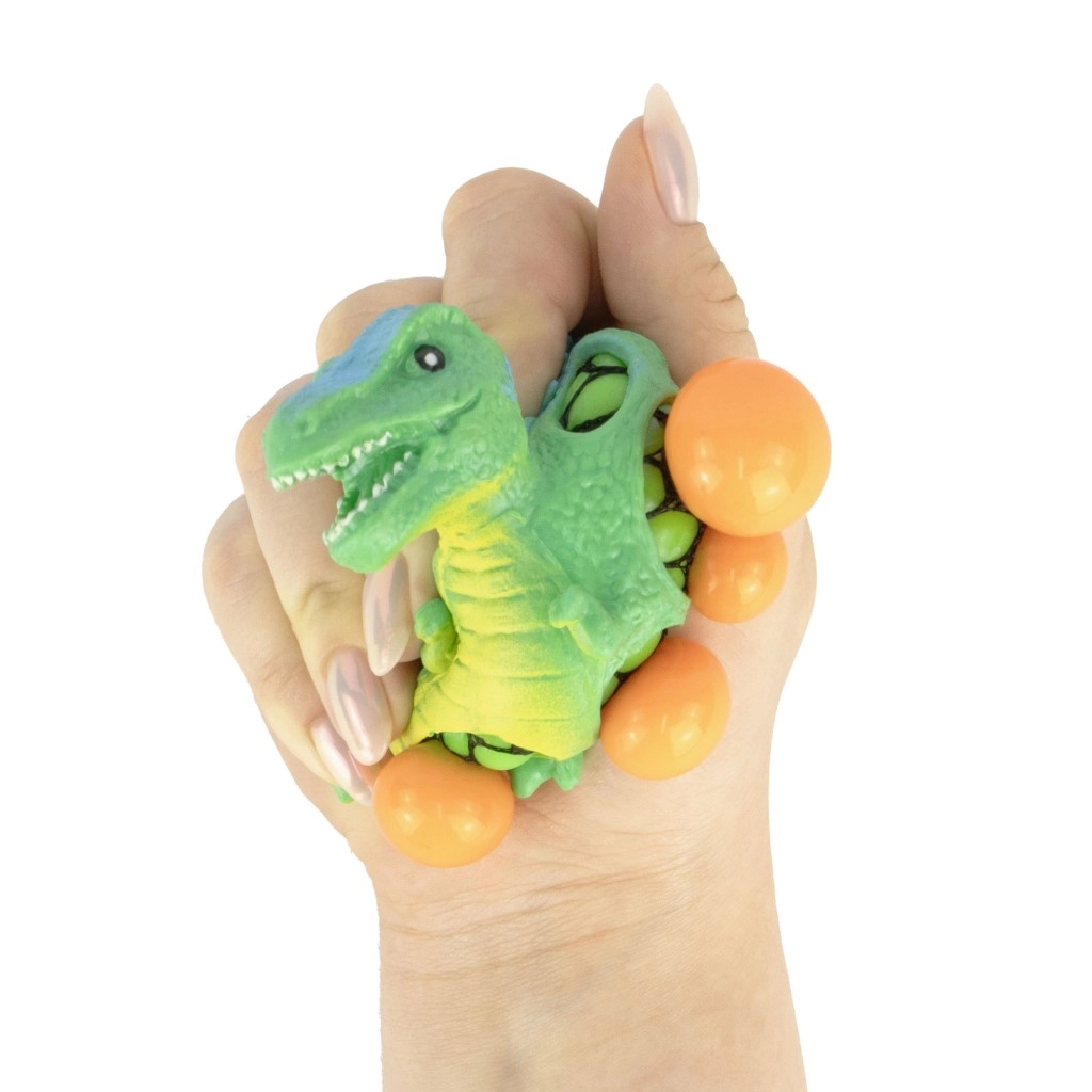Jouet antistress amusant en forme de dinosaure, facile à presser pour une réduction du stress et une stimulation sensorielle. Grâce aux ouvertures dans le corps et aux billes colorées en filet, il offre une agréable sensation tactile, développe la motricité fine et séduit enfants comme adultes par ses couleurs vives.