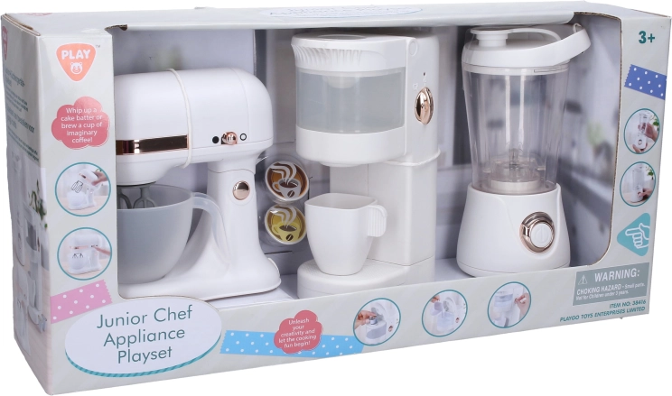 L’ensemble amusant d’appareils de cuisine pour enfants PLAYGO apporte un jeu de cuisine réaliste. Il comprend un mixeur, une machine à café avec réservoir d’eau et un robot de cuisine avec des fonctions qui enthousiasmeront les enfants et stimuleront leur imagination.