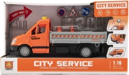Assurez l’ordre en ville avec ce véhicule d’entretien routier détaillé. Grâce à la friction, le véhicule avance après une impulsion, les effets lumineux et sonores renforcent l’ambiance d’un vrai travail sur la route et les panneaux, cônes et accessoires fournis enrichissent les scénarios de jeu.