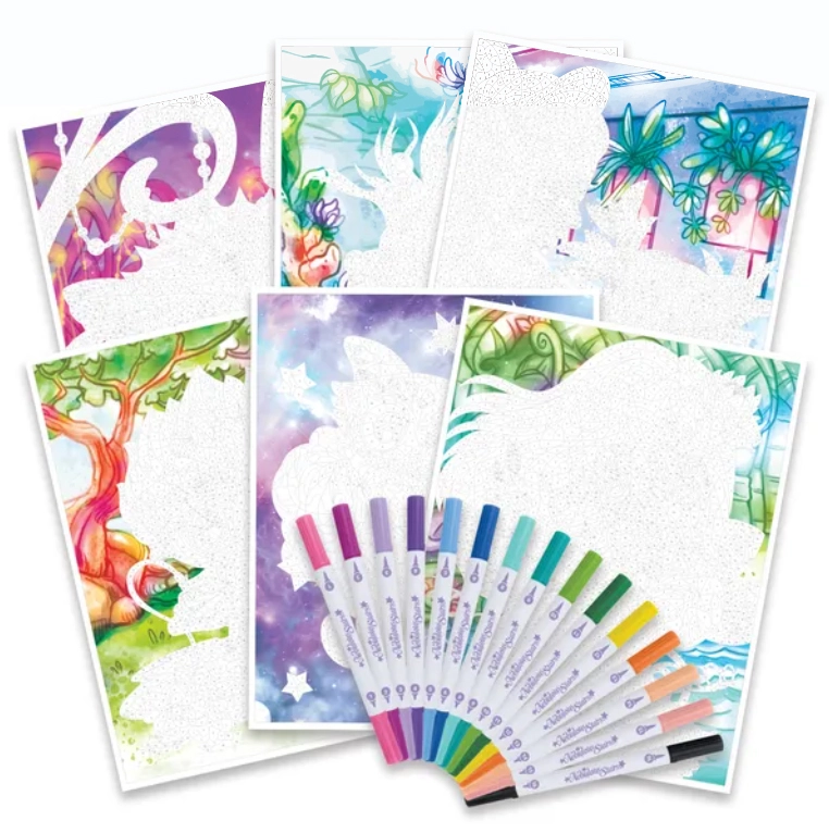 Tout est rangé dans un étui magnétique rigide qui protège les pages et les feutres. Les feutres double pointe offrent un large éventail de nuances pour colorier avec précision les détails comme les surfaces. Ce set est également un excellent cadeau pour tous les amateurs de dessin et de motifs fantastiques.