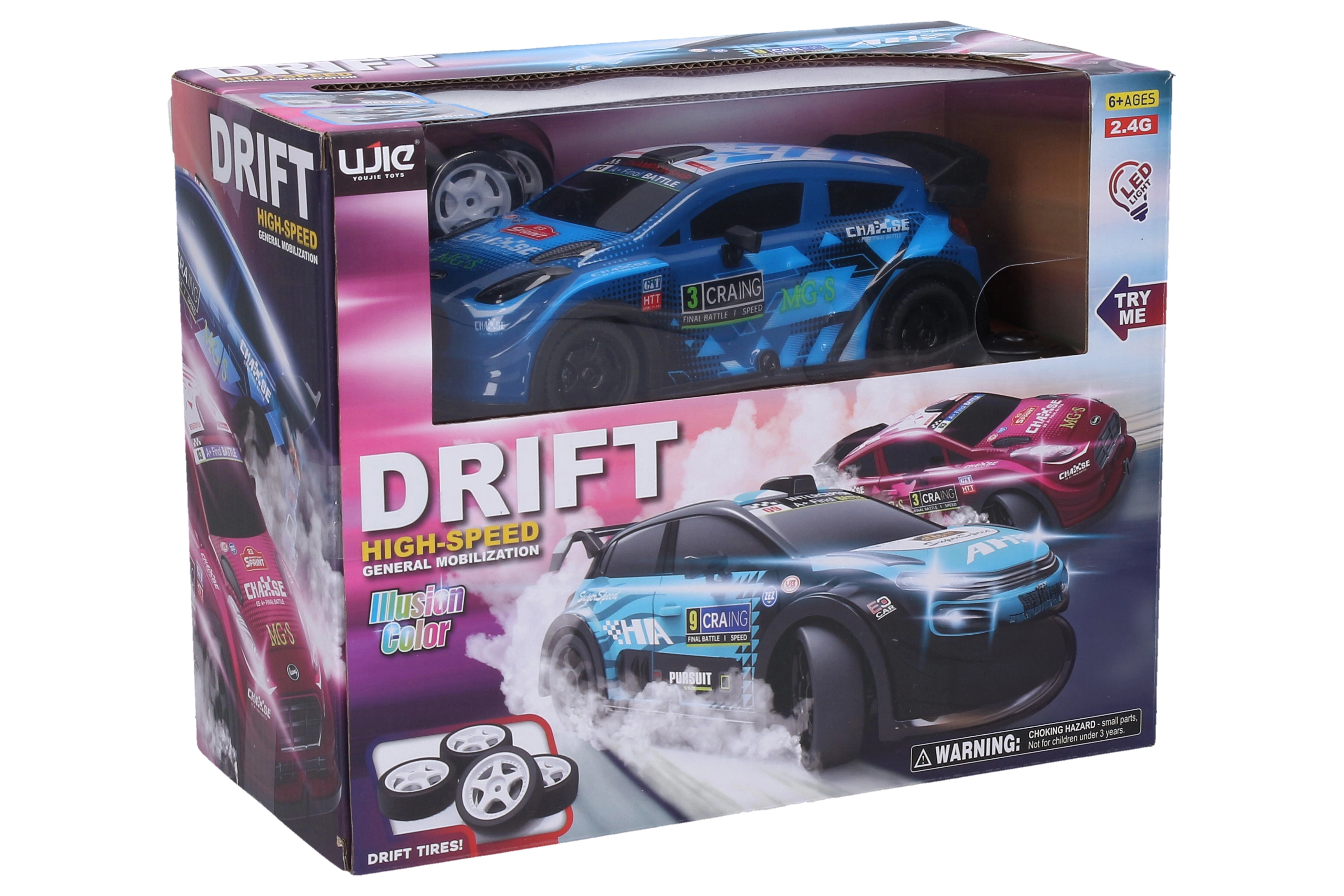 La voiture RC Sprint 23 est parfaite pour les amateurs de drift comme de vitesse. Grâce aux deux jeux de roues, vous passez facilement entre la conduite standard et le drift. La radiocommande pistolet en 2,4 GHz assure un signal stable sans interférences et une prise en main confortable. Les effets lumineux de la carrosserie se déclenchent directement par un bouton sur la commande, pour un superbe spectacle même au crépuscule.