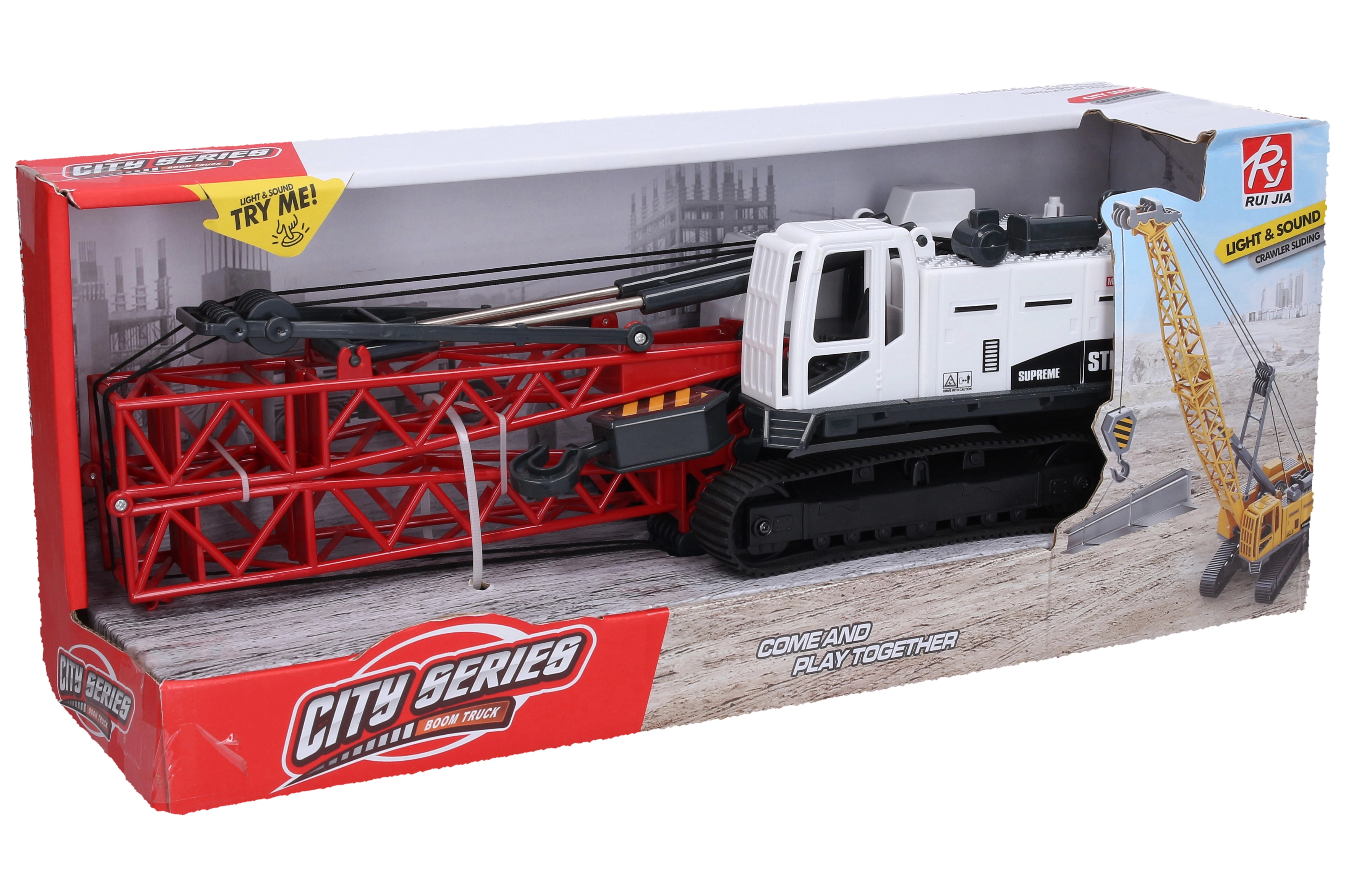 Cette grue à chenilles offre aux enfants un jeu de construction réaliste avec une manipulation simple. Sa construction robuste, ses détails marqués et son déplacement efficace sur chenilles stimulent l’imagination et la motricité fine. Les effets lumineux et sonores renforcent encore l’expérience authentique du chantier.