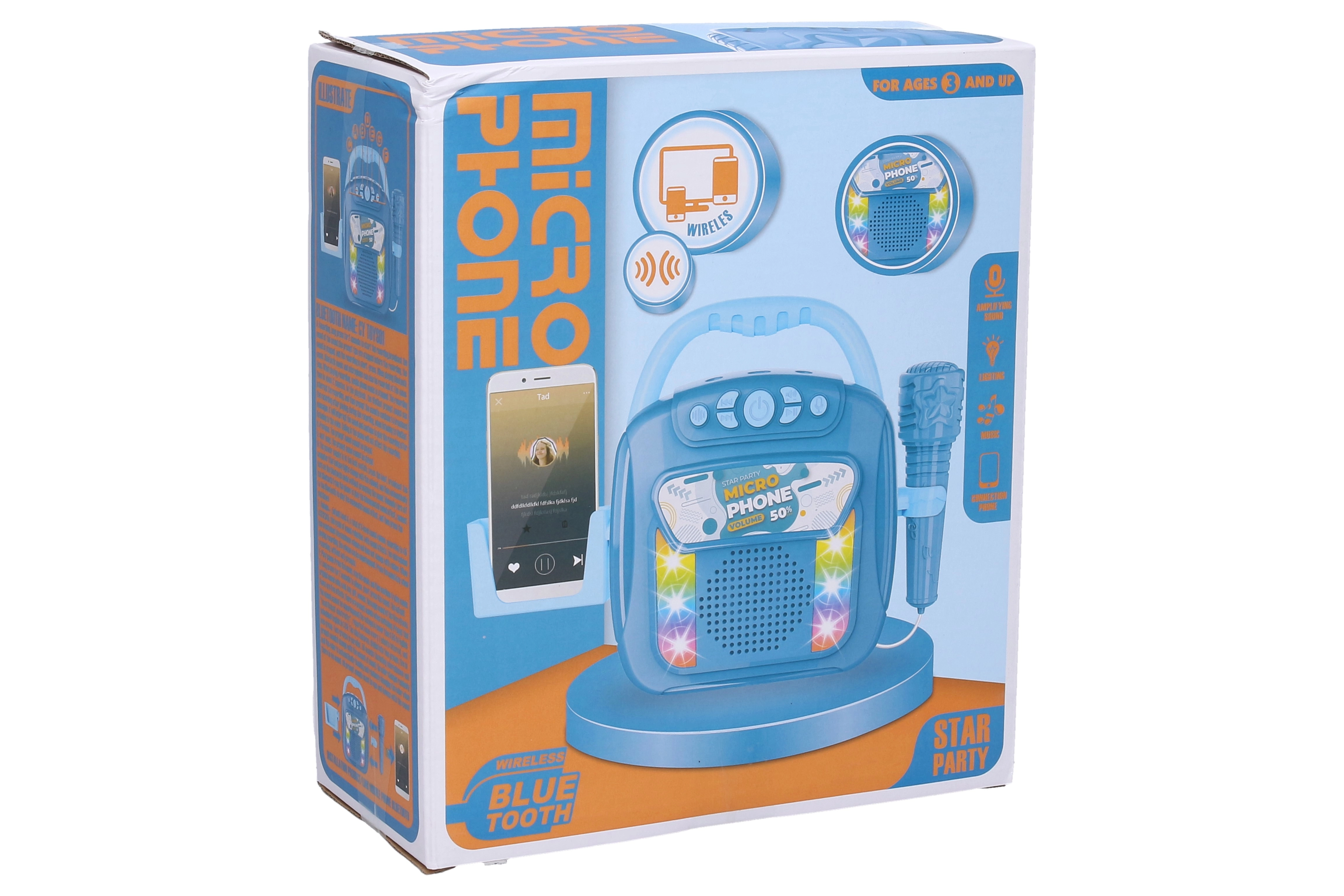La boîte musicale portable avec microphone et connexion sans fil Bluetooth ravira les enfants comme les adultes. Elle offre des effets lumineux, la possibilité d’enregistrement, un réglage facile du volume et le changement de chansons. Le coffret comprend un câble de charge USB, un support pour téléphone portable et un pack batterie 3,7 V – tout est prêt pour une utilisation immédiate.