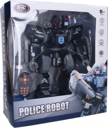 Ce robot RC de police se distingue par son riche équipement et son contrôle intuitif. Sur son bras se trouve un bouton pour le tir manuel et l’emballage inclut 3 fléchettes. La télécommande permet le déplacement dans toutes les directions, l’activation du mode démo, de l’effet de tir, des effets lumineux ainsi que la programmation de séquences. Danse, musique et réglage du volume assurent un jeu confortable à la maison.