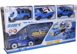 Partez en mission policière avec un grand camion transportant trois voitures à visser. Le set propose des effets lumineux et sonores, des roues libres qui tournent facilement et un interrupteur ON/OFF placé sur la face inférieure du camion. Grâce au tournevis fourni, les enfants peuvent démonter et remonter les véhicules, développant ainsi leur motricité fine, leur patience et leurs compétences techniques.