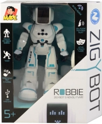 Fais connaissance avec le compagnon robotique Robbie Zigybot, qui apporte à la fois amusement et apprentissage. Il offre un contrôle IR et par gestes de la main, la programmation des mouvements, 20 expressions faciales à LED, des sons robotiques et de la danse. Grâce à la recharge USB, il est toujours prêt pour de nouvelles missions et ravira les enfants dès 5 ans.