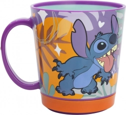 Mug en plastique élégant avec motif STITCH et technologie intelligente SmartGrip pour éviter tout renversement. Le fond antidérapant et anti-bruit adhère fermement aux surfaces lisses, de sorte que le mug ne se renverse pas, tout en pouvant être soulevé facilement à tout moment. Léger, résistant et idéal pour une utilisation quotidienne ou comme cadeau original.