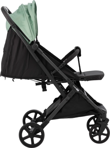 La poussette se plie rapidement en un format compact, ce qui permet de la ranger confortablement dans le coffre de la voiture ou de la porter dans les escaliers.
