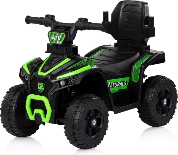Look sportif de quad, effets lumineux et sonores (3× AA, non inclus) et commandes claires sur le guidon pour ravir les petits conducteurs.