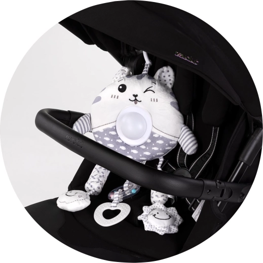 Le mignon jouet suspendu Big Kitty de la marque Chipolino captive les bébés à la maison comme en promenade. Il offre 15 mélodies et chansons, des effets lumineux et un design compact avec un clip pratique pour une fixation facile sur la poussette ou le lit. Commande simple avec deux boutons et textures douces pour favoriser le développement sensoriel. Fonctionne avec 2× piles AAA (non incluses).