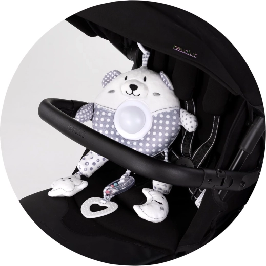 L’ourson en peluche Big Bear est un jouet suspendu doux et sûr qui amuse bébé lors des promenades comme pendant le repos au lit. Les mélodies variées et les effets lumineux délicats favorisent le développement des sens et aident à instaurer une atmosphère apaisante.