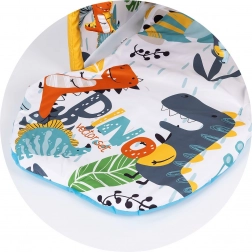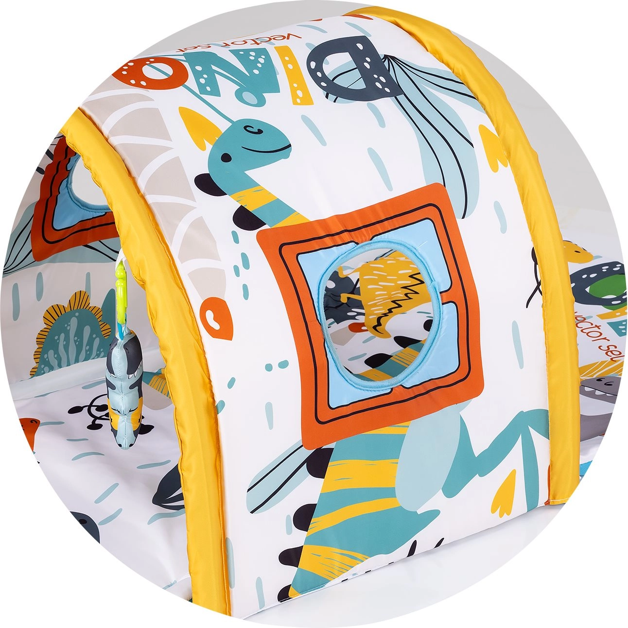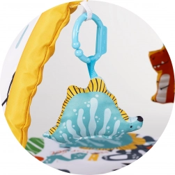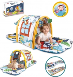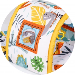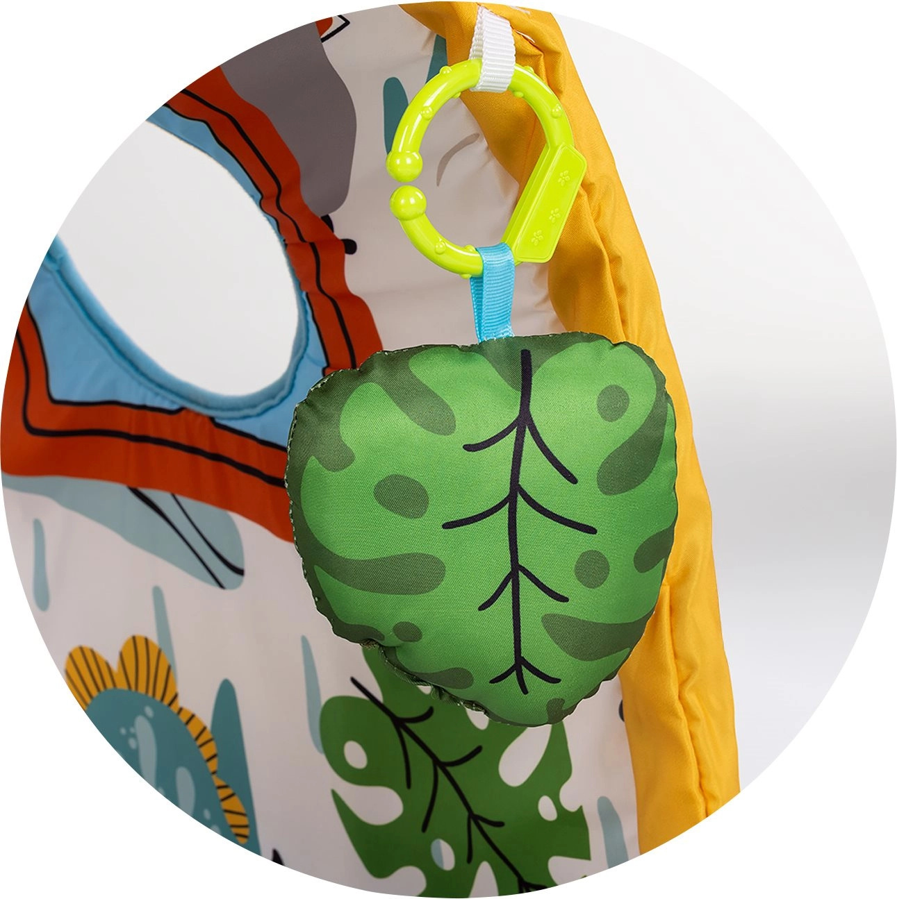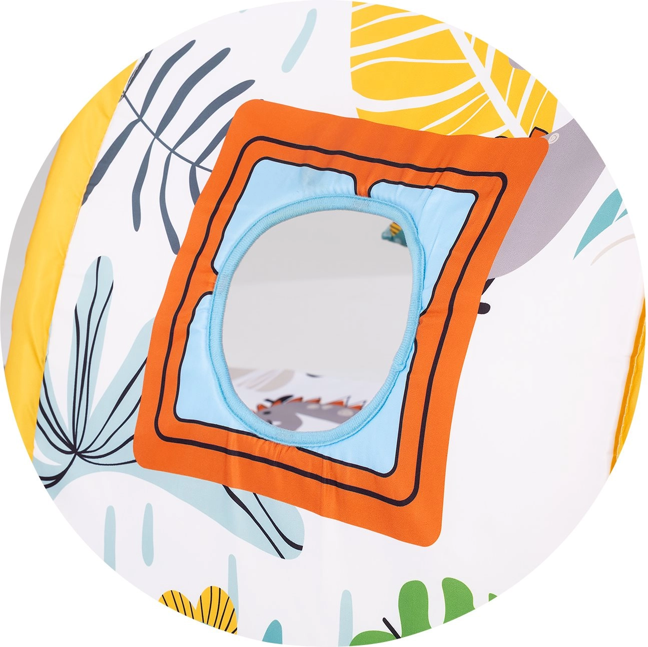 Grâce à sa conception sûre et confortable, le tapis offre un espace agréable pour jouer sur le ventre comme sur le dos. Les fenêtres et les détails du tunnel invitent à regarder et à se cacher, ce qui développe la curiosité et l’imagination. Les éléments colorés et les textures fournissent de riches stimuli pour le développement sensoriel et les premières interactions sociales avec les parents.