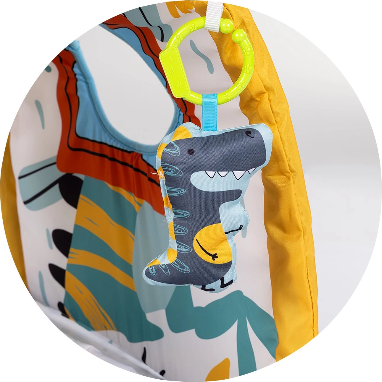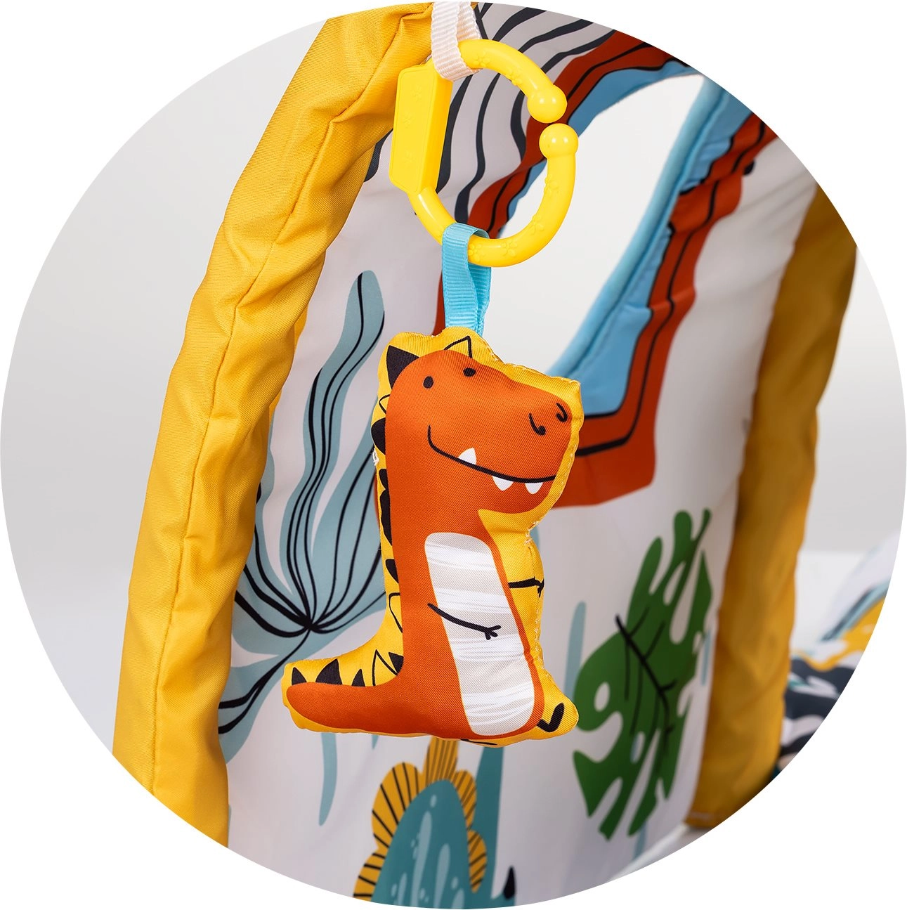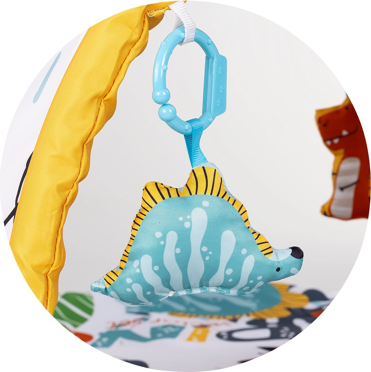 Le tapis rembourré avec arche et jouets suspendus incite le bébé à saisir et renforce la coordination œil-main.