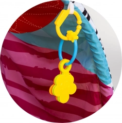 Des jouets à clip amovibles avec hochets et textures favorisent la préhension, l’exploration et la stimulation visuelle, et peuvent être fixés à l’arceau ou à la poussette.