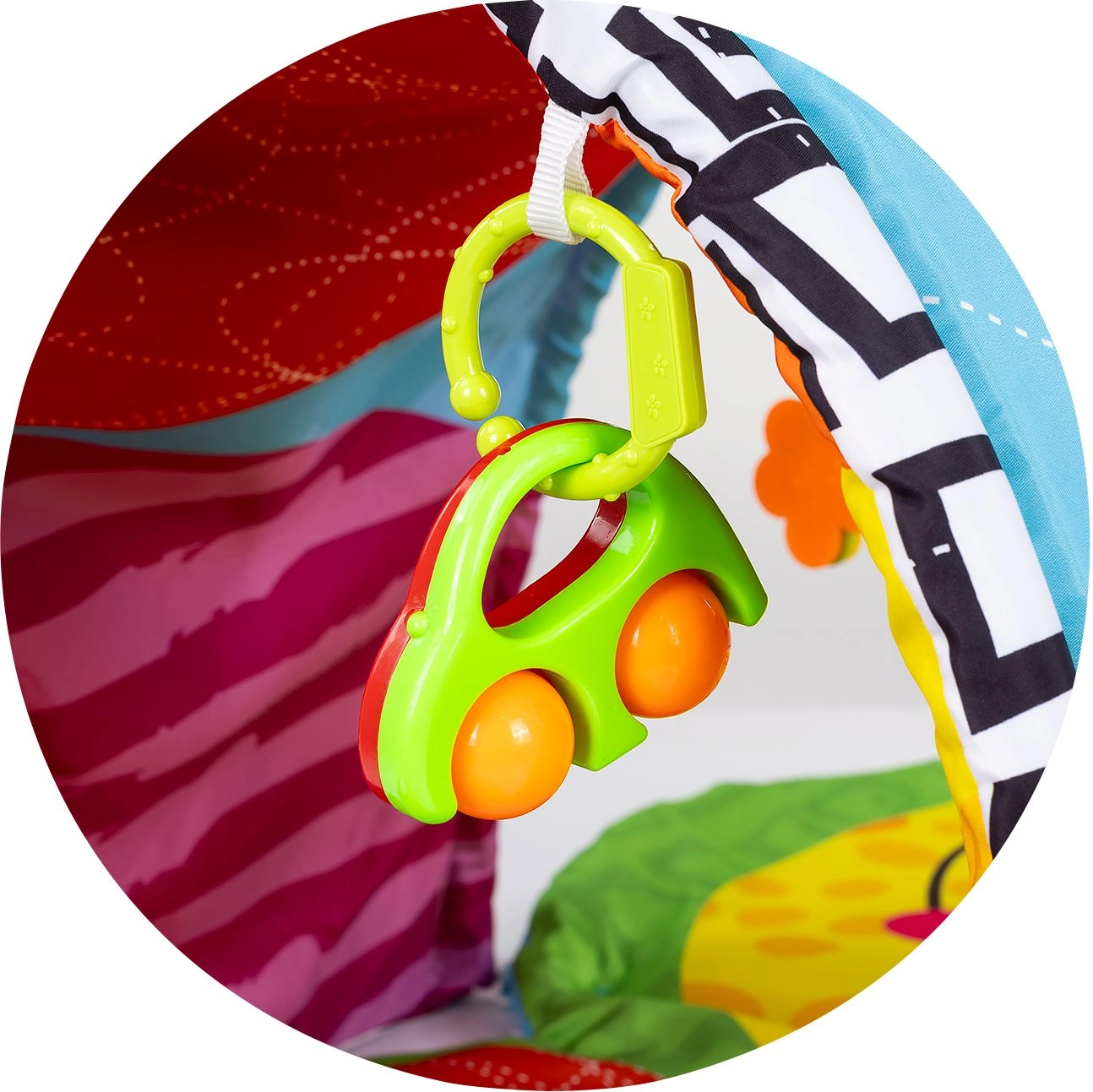 Des détails bien pensés soutiennent le développement de la coordination œil–main, de la motricité fine et globale ainsi que la perception des couleurs et des formes. Le tapis offre sécurité et confort à chaque séance de jeu et s’intègre facilement dans la chambre d’enfant.