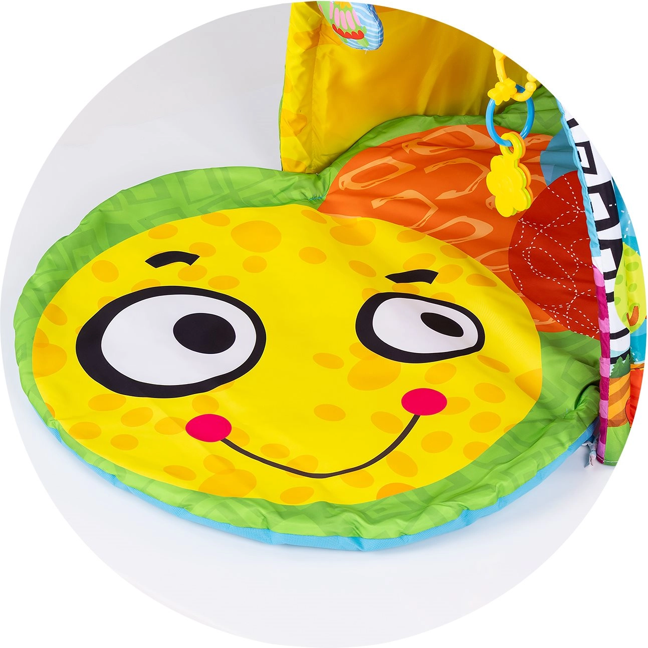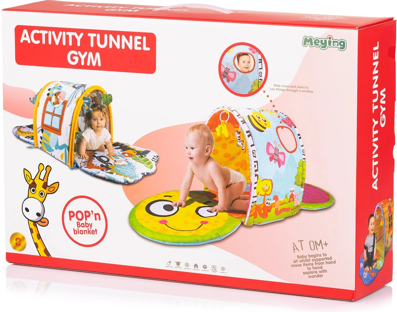 Des motifs colorés, des jouets suspendus et un tunnel sécurisé encouragent la stimulation sensorielle, la coordination œil–main et le développement de la motricité globale dès les premiers mois.