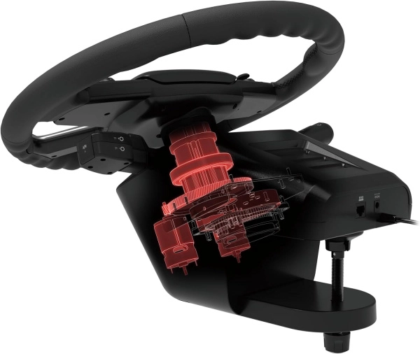 Le HORI Force Feedback Truck Control System pour PC est conçu pour un réalisme maximal et un confort optimal sur les longues distances. Le volant pleine taille avec similicuir et rotation à 1800° reproduit fidèlement un vrai camion, tandis que le double moteur Force Feedback restitue précisément la masse, l’adhérence et les revêtements de chaussée. Des commodos intégrés pour les lumières et les freins, ainsi qu’un riche ensemble de boutons, vous donnent un contrôle direct et rapide de toutes les fonctions.