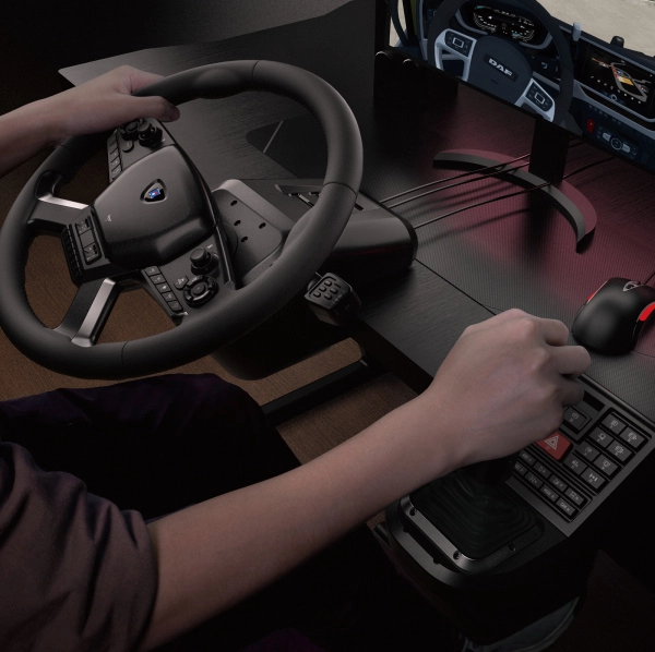Développé en collaboration avec SCS Software pour une compatibilité optimale avec ETS2 et ATS. Le pack comprend des clés Steam pour les deux jeux — il suffit de brancher, configurer et prendre la route.