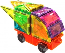 Cette construction colorée offre un jeu libre et d’infinies possibilités de création. Les aimants intégrés sur tous les côtés des formes assurent un assemblage facile et stable, permettant aux enfants de construire rapidement leurs propres voitures, remorques et originales structures 3D. Le jeu développe naturellement la perception spatiale, l’apprentissage des couleurs et des formes géométriques.