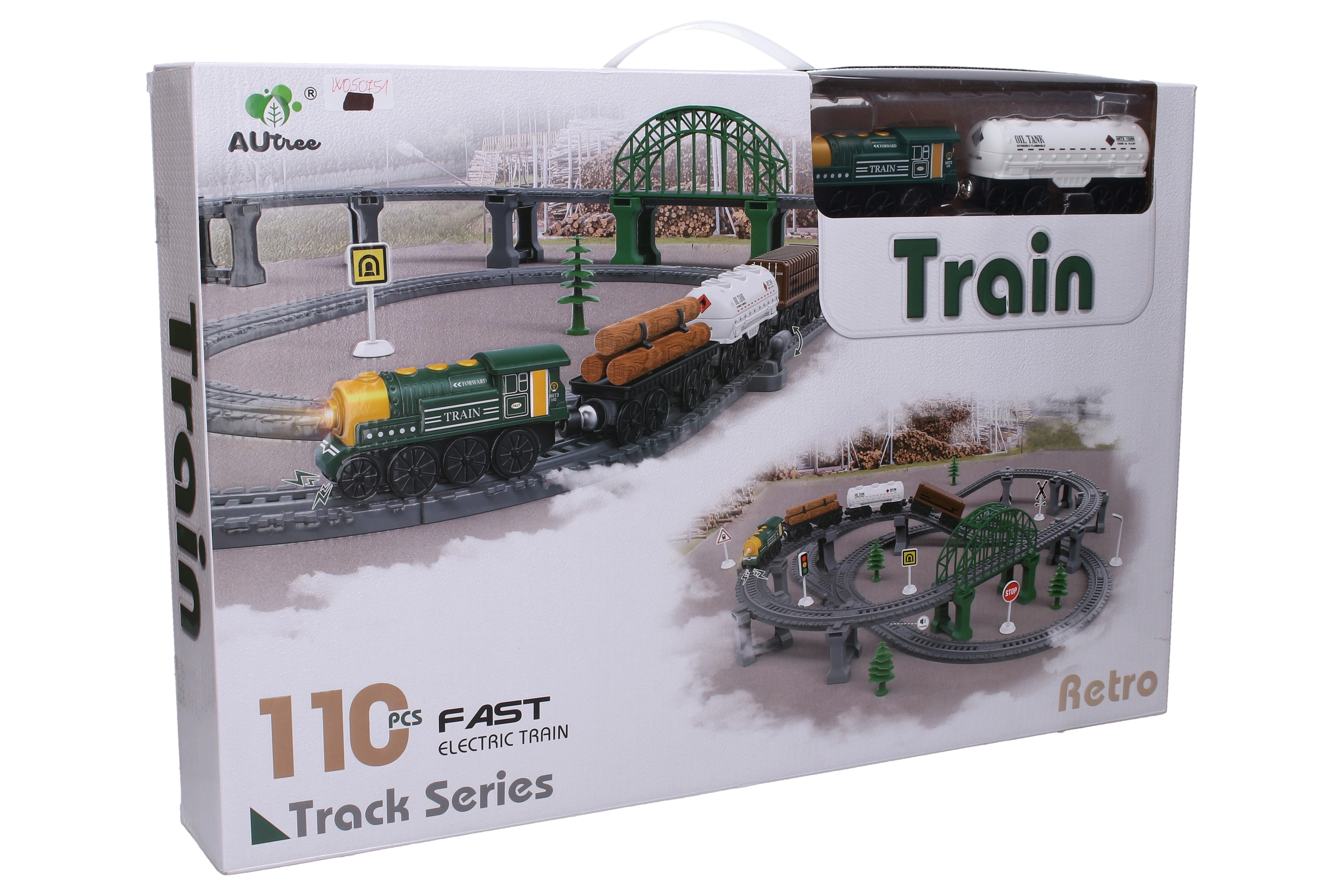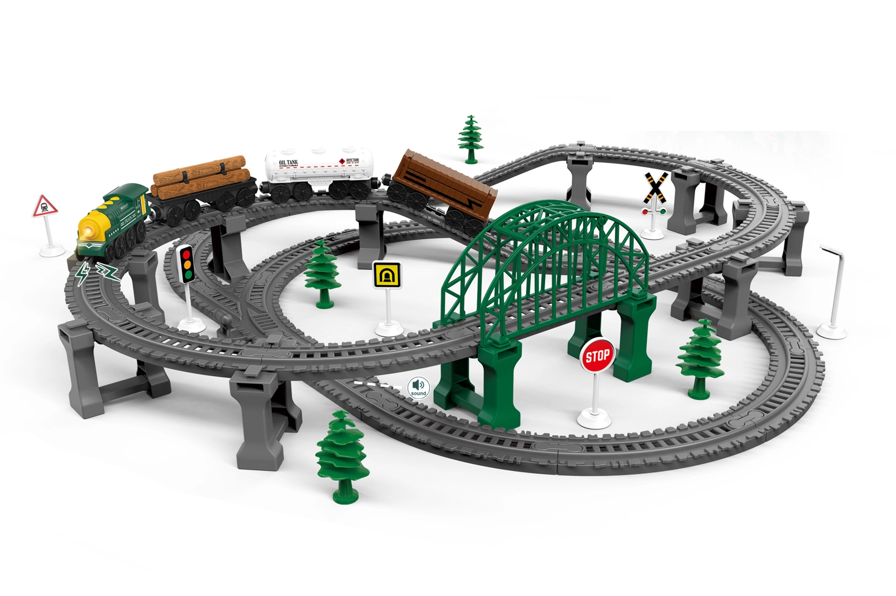 Circuit de train avec effets sonores 77 × 76 × 16 cm, 110 pièces
