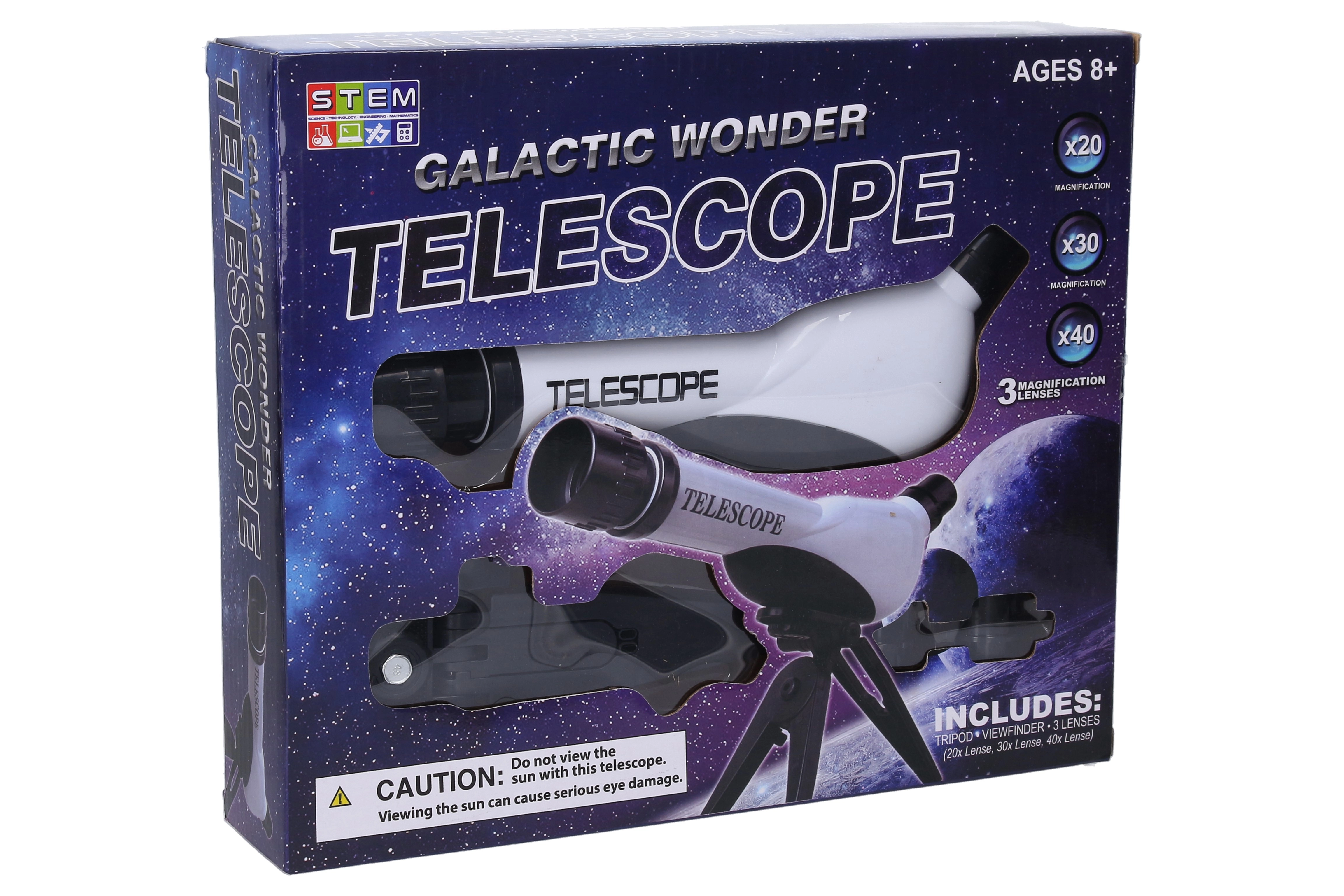 Découvrez le ciel nocturne avec ce télescope astronomique compact, idéal pour les débutants et les enfants curieux. Il offre un grossissement 20×, 30× et 40×, des oculaires interchangeables pour différents niveaux de zoom et un trépied stable pour une observation confortable. La mise au point simple par rotation de l’objectif facilite l’obtention d’une image nette, qui apparaît inversée en miroir à travers le télescope (caractéristique optique).