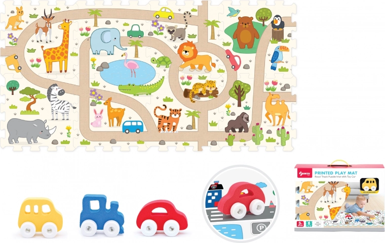 Découvrez un jeu ludique et sûr avec cet ensemble de blocs souples et une petite voiture safari. Le set comprend 8 blocs souples de dimensions 31,5 × 31,5 × 1 cm et une petite voiture à roues libres, qui stimulent la créativité, la motricité et un jeu sécurisé à la maison comme à la maternelle.